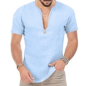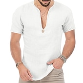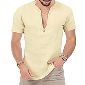 More information about Men's Summer Shirt Casual Shirt Beach Shirt Plain Hawaiian Holiday Black White Blue Khaki Short Sleeve V Neck Spring & Summer Clothing Apparel Basic