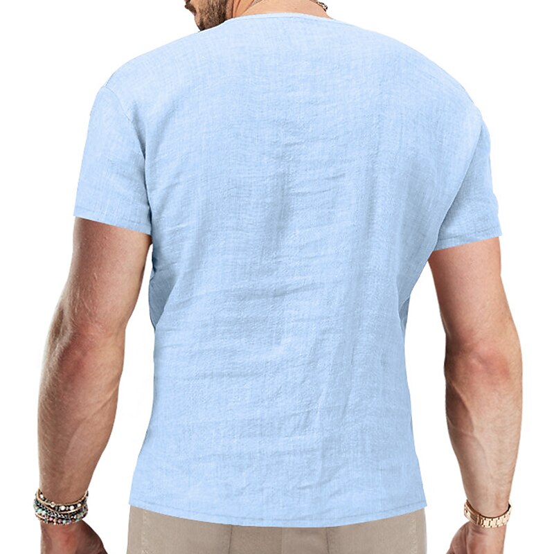 Men's Summer Shirt Casual Shirt Beach Shirt Plain Hawaiian Holiday Black White Blue Khaki Short Sleeve V Neck Spring & Summer Clothing Apparel Basic 7