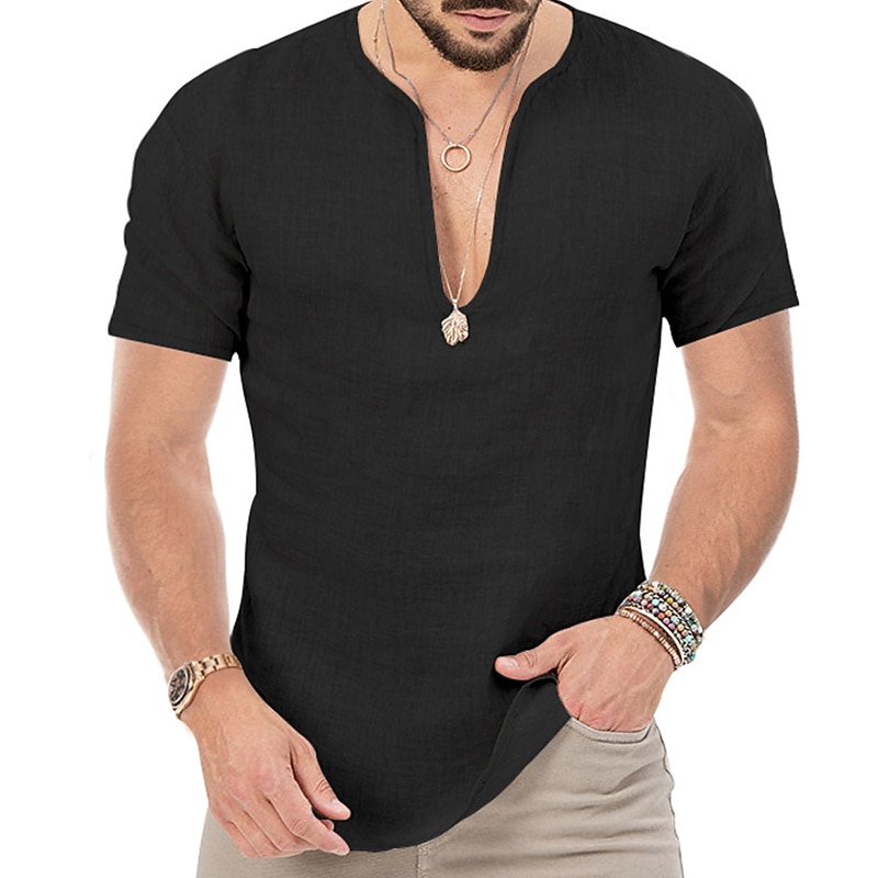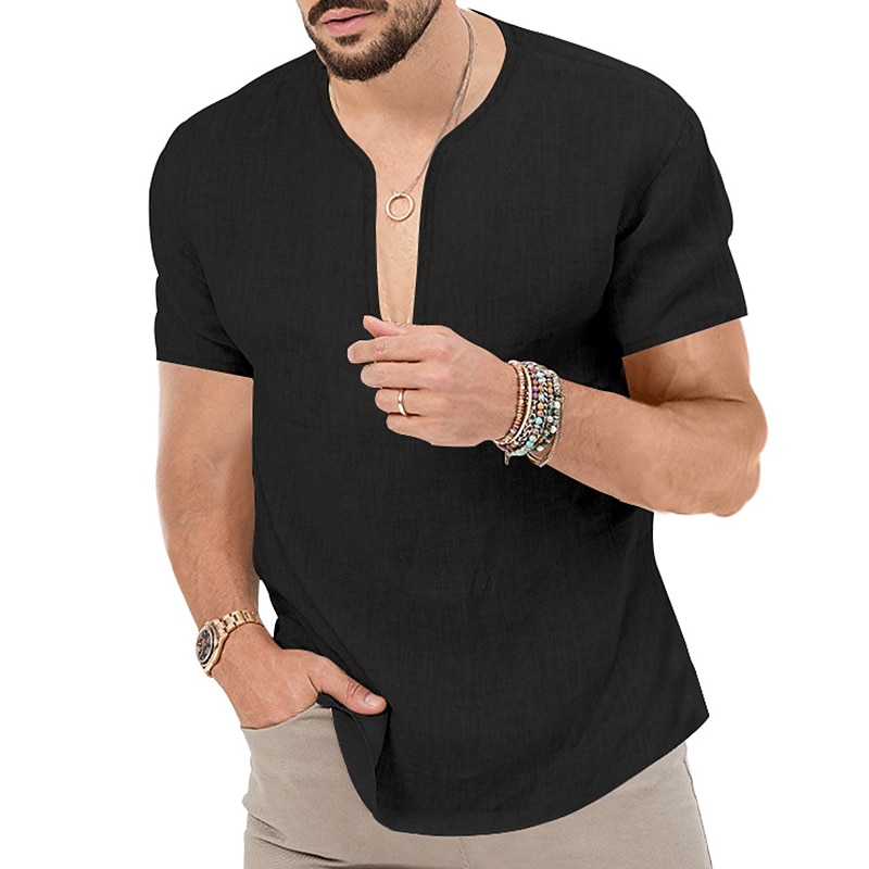 Men's Summer Shirt Casual Shirt Beach Shirt Plain Hawaiian Holiday Black White Blue Khaki Short Sleeve V Neck Spring & Summer Clothing Apparel Basic 9