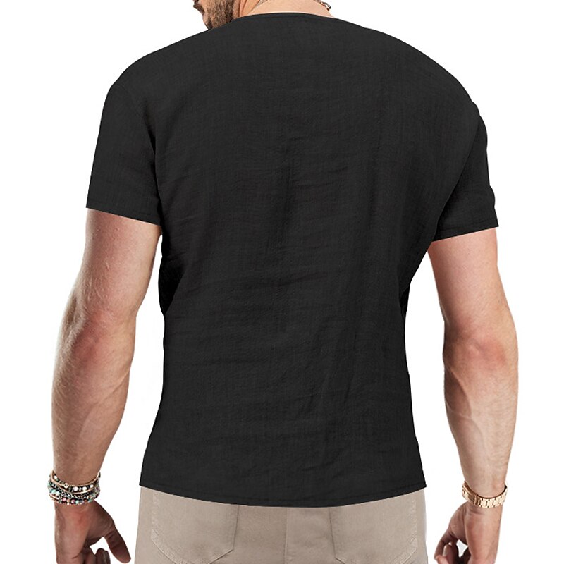 Men's Summer Shirt Casual Shirt Beach Shirt Plain Hawaiian Holiday Black White Blue Khaki Short Sleeve V Neck Spring & Summer Clothing Apparel Basic 6