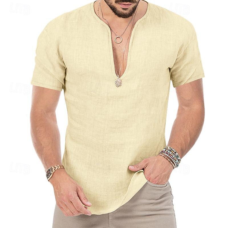 Men's Summer Shirt Casual Shirt Beach Shirt Plain Hawaiian Holiday Black White Blue Khaki Short Sleeve V Neck Spring & Summer Clothing Apparel Basic 13