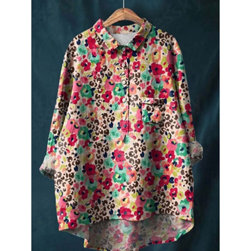 More information about Women's Shirt Linen-Inspired Shirts Long Sleeve Shirt Collar Red Navy Blue Blue Spring & Fall