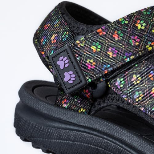 GreaterGood Walking Paws River Sandals Lightweight EVA Adjustable Water Shoes Textured Insole Animal Print Design for Women Ladies 3