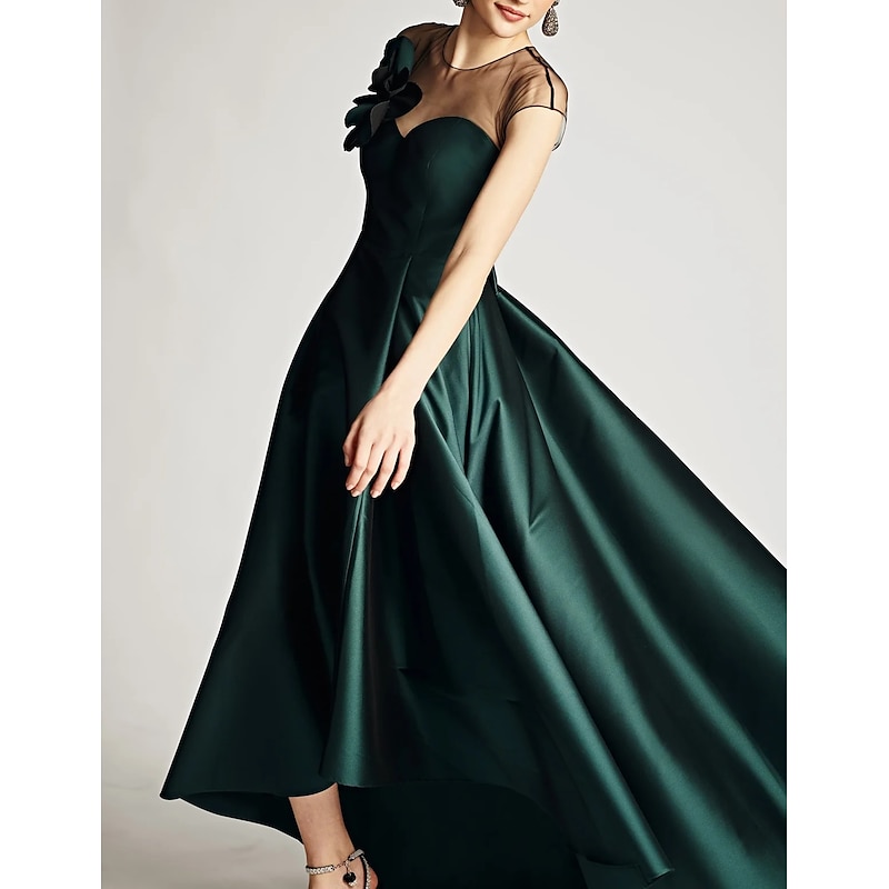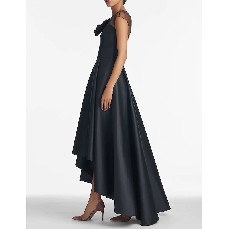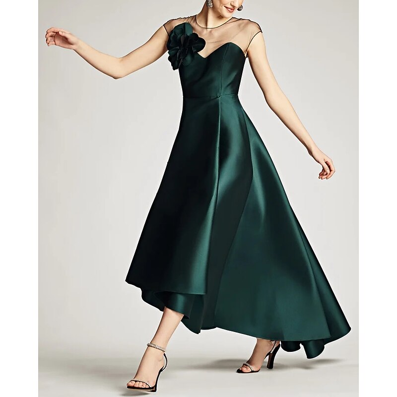 More information about A-Line Mother of the Bride Wedding Guest Dresses Elegant Dress Wedding Guest Wedding Party Asymmetrical Sleeveless Jewel Neck Satin with Shouder Flower Dresses