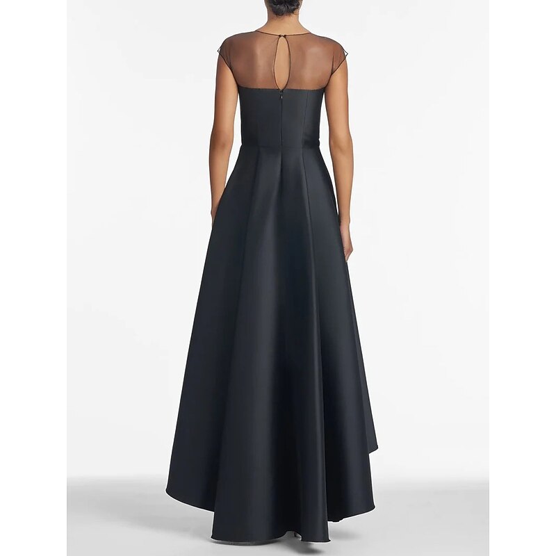 Highlights [Fabric] : Carefully crafted from luxurious satin, this dress offers a smooth and lustrous finish, providing both elegance and comfort for any formal occasion. [Silhouette] : The A-line design flatters a wide range of body types, featuring a modern high-low hemline that adds dynamic movement and a contemporary touch to a classic silhouette. [Design Highlights] : This elegant dress boasts several eye-catching details. The jewel neckline is complemented by a sheer overlay, adding a hint of mystery and femininity. A beautifully crafted floral embellishment on the shoulder serves as a standout feature, enhancing the romantic appeal of the gown. [Occasions] : Perfectly suited for wedding parties, as a wedding guest dress, or for black-tie affairs. This dress is designed to make a lasting impression at any elegant gathering, ensuring you stand out in style. [Size Information] : Available in a wide range of sizes to accommodate various body types, including options from US 0 / UK 2 / EU 30 to US 26W / UK 30 / EU 56. Custom measurements for a perfect fit are also available, allowing you to personalize the dress to your exact needs.