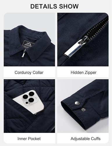 Cotrasen Men's Winter Quilted Casual Cotton Jacket Corduroy Collar Cargo Jackets with Multi Pockets 1