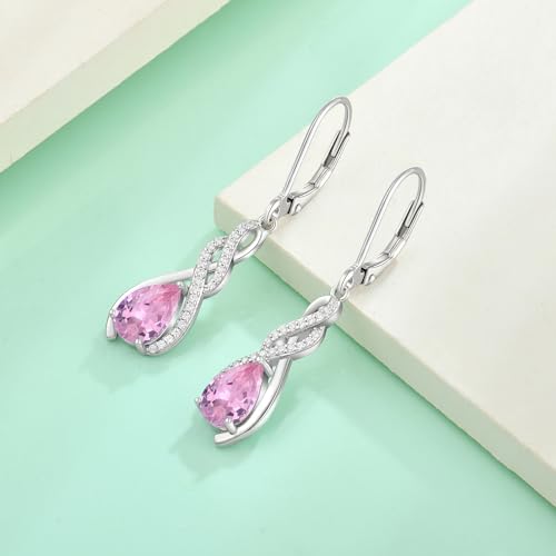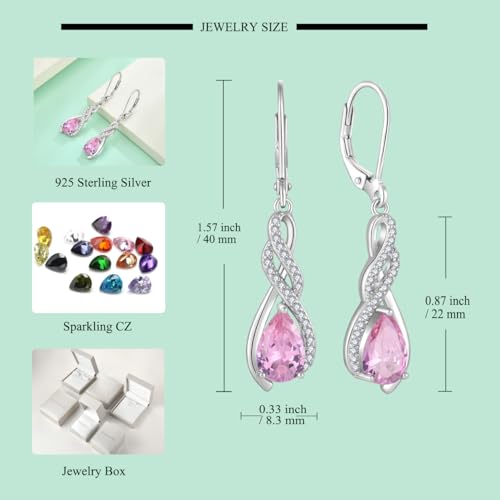 sought-after ! Starchenie Infinity Birthstone Dangle Drop Earrings for Women 925 Sterling Silver Pear Gemstones Leverback Earrings Jewelry Gift