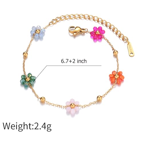 More information about Daisy Flower Bracelet for Women 18K Gold Plated Stainless Steel Colorful Flowers Link Chain Bracelets Boho Beach Summer Jewelry