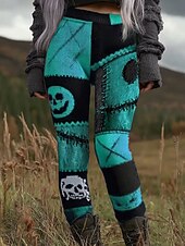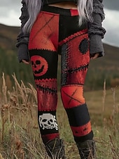 More information about Women's Leggings Vacation Vintage Ethnic Style Full Length High WaistPantsHalloween Graphic Monster Drawstring 3D Print Printing Quick Dry Breathability Soft Stretchy Formal Outdoor Vacation Red Blue