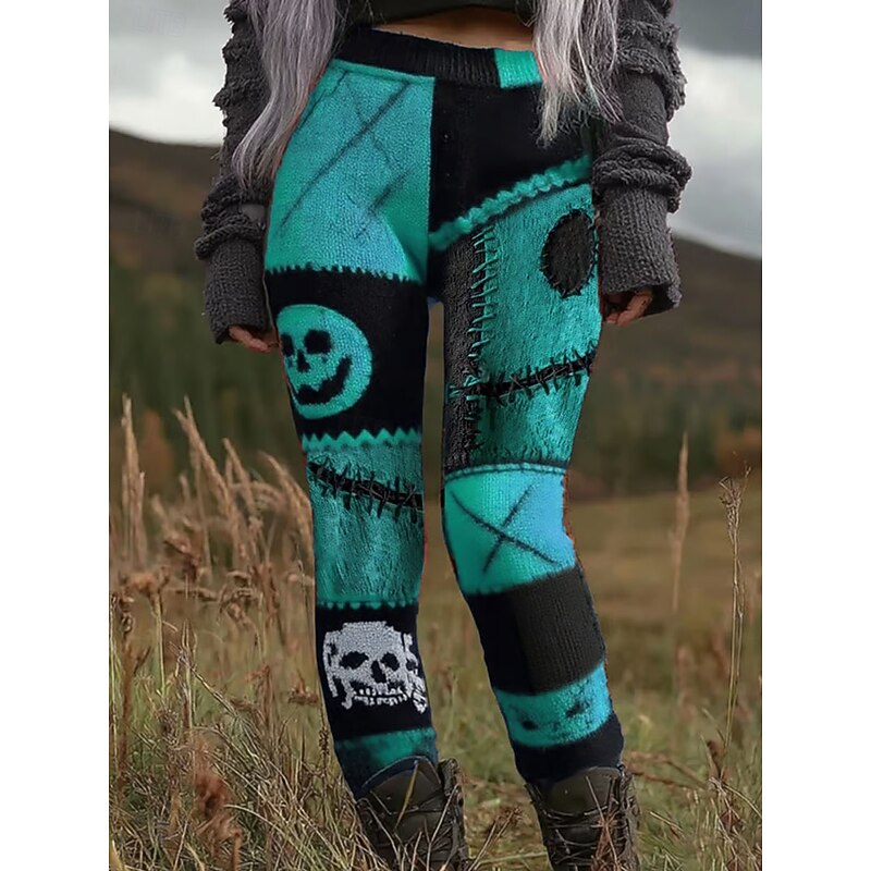 Women's Leggings Vacation Vintage Ethnic Style Full Length High WaistPantsHalloween Graphic Monster Drawstring 3D Print Printing Quick Dry Breathability Soft Stretchy Formal Outdoor Vacation Red Blue 9