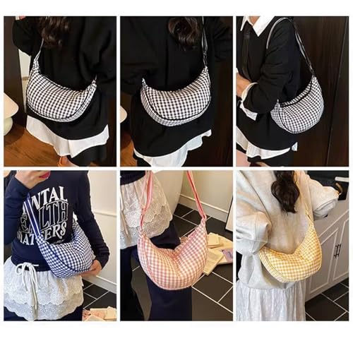 HOT ! Checkered Crossbody Bag Gingham Half Moon Shoulder Bags for Women Plaid Crescent Hobo Crossbody Purse Casual Gingham Bum Bag