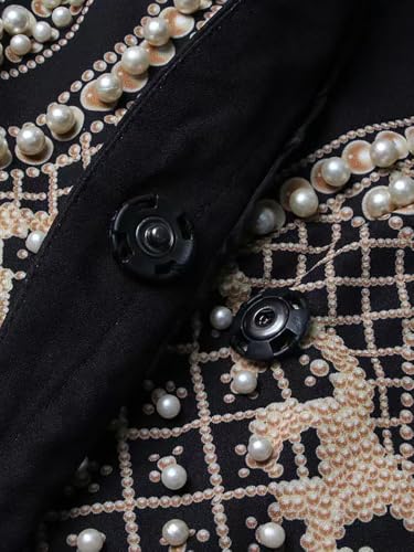 Elegant Pearl Beaded Blazer Dress for Women Loose Fit Deep V Neck Long Sleeve Female Fashion Jacket Wedding Prom Party 6