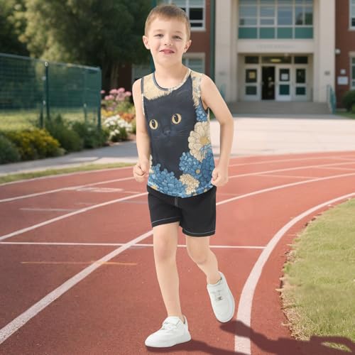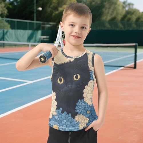 Bolaz Boys Athletic Quick Dry Tank Top Sleeveless Workout T Shirts Age 11-15,Daisy and Black Cat 1
