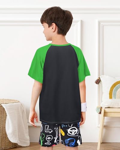 • 2 PIECE SHORTS SET: 1*Kid boys short sleeves and 1* matching boys pajama short pants.Super soft and cozy, your boys can wear it for a more comfortable and restful sleep.