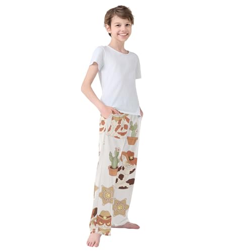 Western Cat Boys Pants Boys Athletic Pants Long Pant for Boywith Pockets Wide-Leg Size 6-14Y 6
