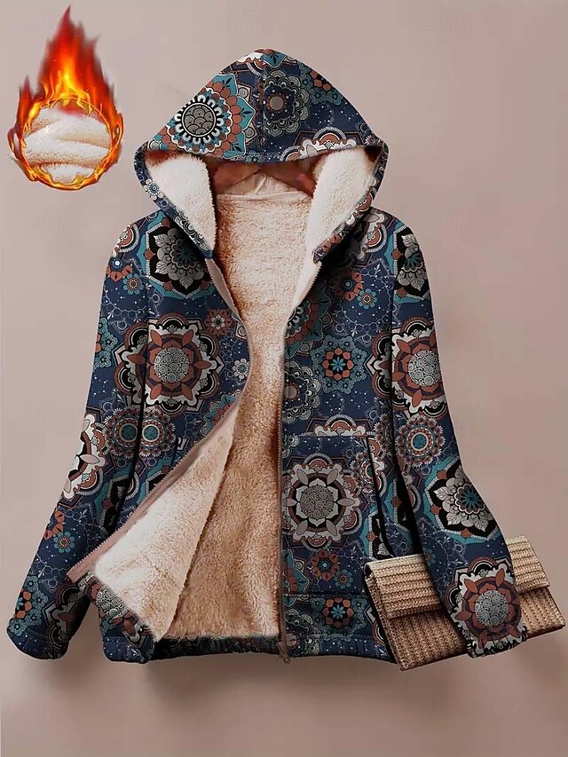 HOT ! Women's Zip Up Hoodies Floral Graphic Geometric Warm Active Vintage Long Sleeve Hooded Regular Tops Home Work Party Evening Wear Print Dark Blue Spring Fall Winter