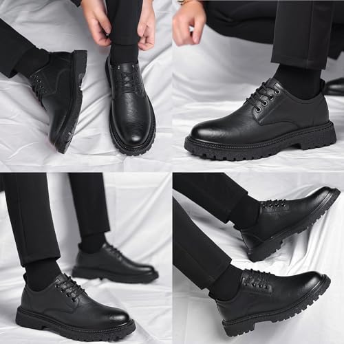 Men's Genuine Leather Lace-Up Vintage Oxfords,Fashion Round Toe Casual Brogue Dress Shoes, Comfortable Non-Slip Low Top Business Work Shoes 4