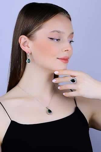 • Complete Jewelry Set: Includes a pair of emerald earrings, a matching ring, and a necklace, providing a coordinated and elegant look.