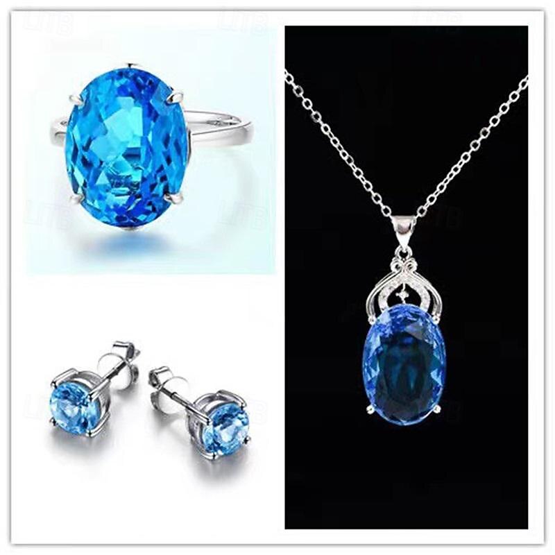 Online Celebrity The Same New Type Of Imitation Natural Topaz Suit Tiktok Live Broadcast Popular Color Treasure Ring Earring Pendant Female 4