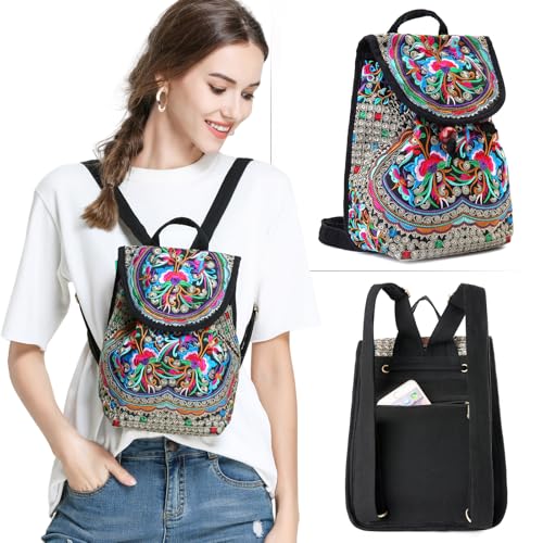 More information about Goodhan Vintage Embroidered Women Backpack Ethnic Travel Handbag Shoulder Bag, 9.8 x 8.2 x 3.9 inch