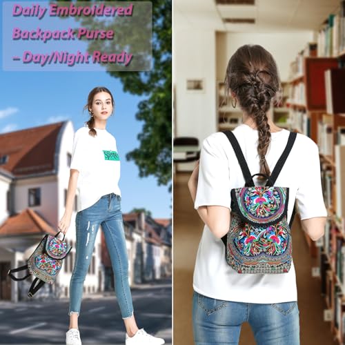 Goodhan Vintage Embroidered Women Backpack Ethnic Travel Handbag Shoulder Bag, 9.8 x 8.2 x 3.9 inch 4