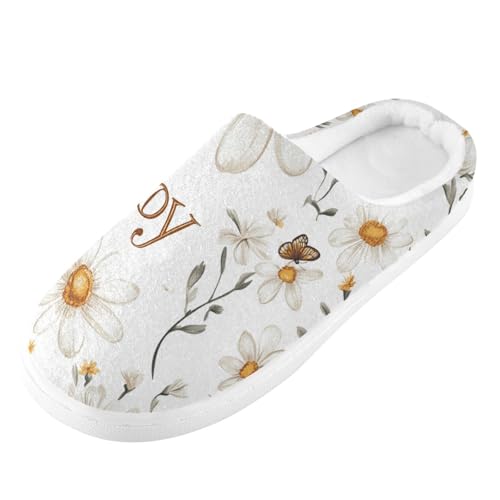JUNZAN Rustic Daisy White Mens Home Cotton Slipper Comfort Memory Foam Hotel Slippers for Indoor Birthday Presents 6-7 5