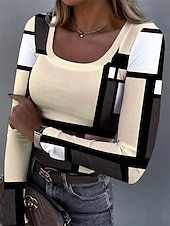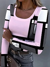 More information about Women's Tunic Graphic Geometric Abstract Vintage Fashion Stylish Long Sleeve Square Neck Regular Tops Daily Print Pink Khaki Light Blue Spring Fall Winter