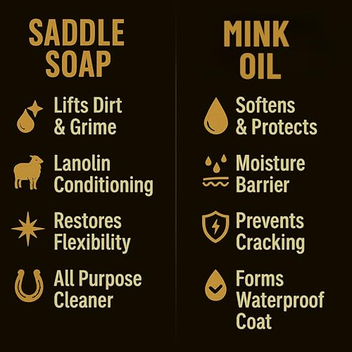 • Better Formula & Bigger Size: Crafted with a superior-quality formula and generous 100mL tins, our saddle soap and mink oil outperform smaller competitors—delivering long-lasting cleaning, conditioning, and protection for all your leather gear.