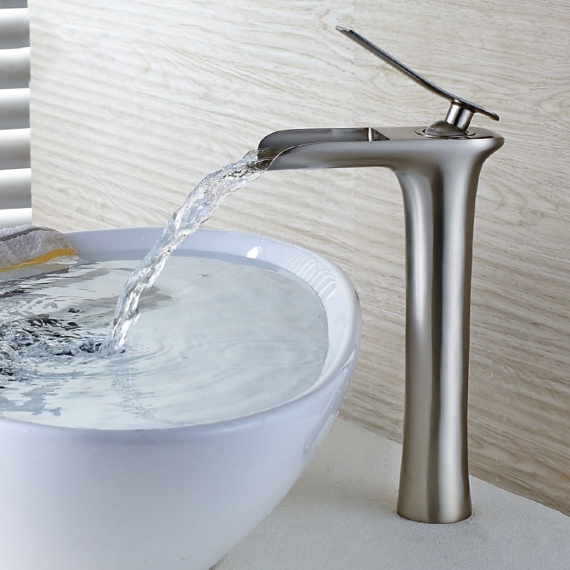 Bathroom Sink Faucet,Brass Waterfall Centerset Single Handle One Hole Bath Taps 1