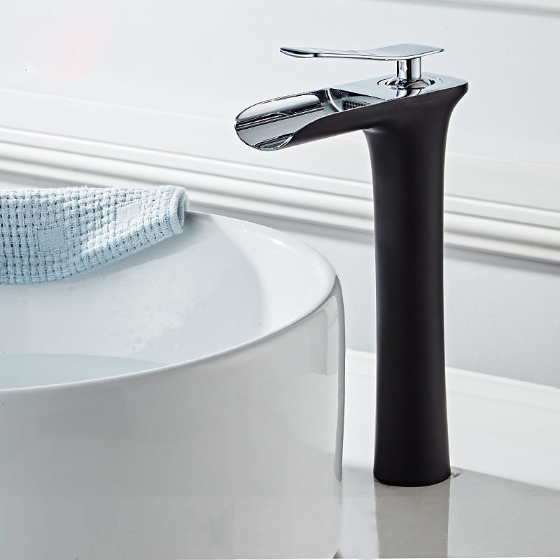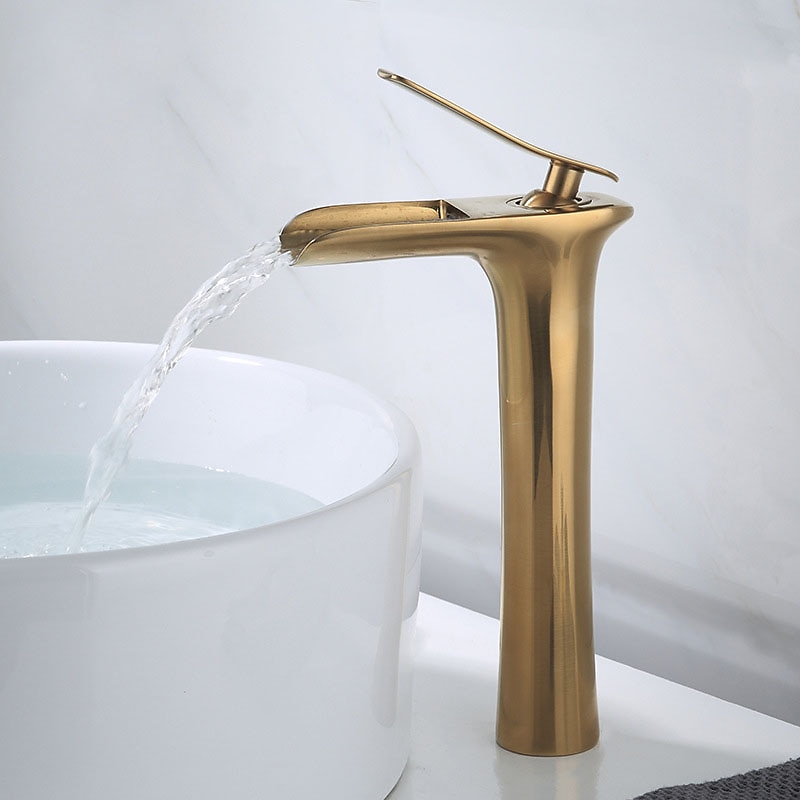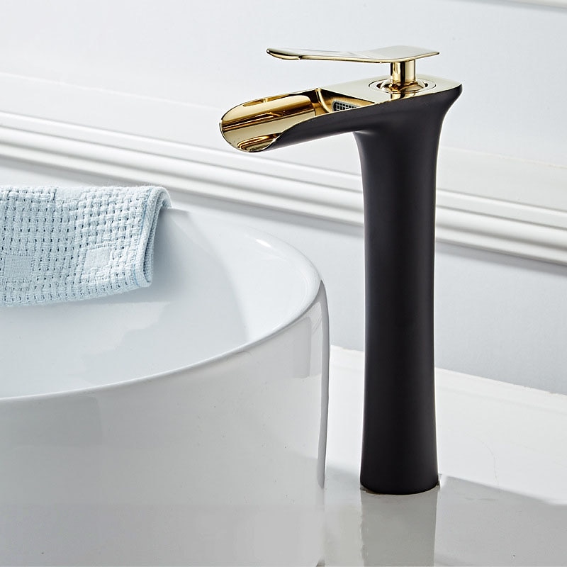 Bathroom Sink Faucet,Brass Waterfall Centerset Single Handle One Hole Bath Taps 20