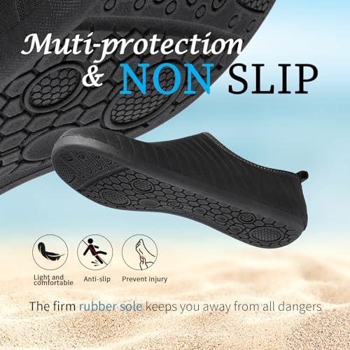 • SOFT & PROTECTIVE SOLE: These water sock shoes are made of soft and highly elastic sole, and the non-slip bumpy texture design will provide you with great protection when you are doing water activities.