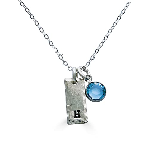By Hannah Design Sterling Silver Tiny Initial Personalized Necklace with Birthstone Crystal 1