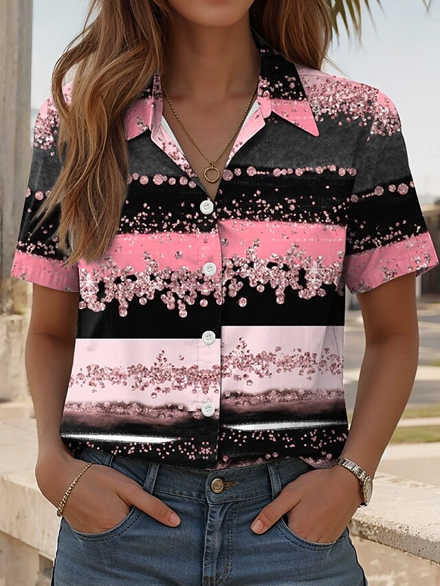 Women's Shirt Long Sleeve Button Down Blouse Graphic Geometric Daily Casual Short Sleeve Shirt Collar Regular Tops Daily Pink Blue Green Summer Spring 8