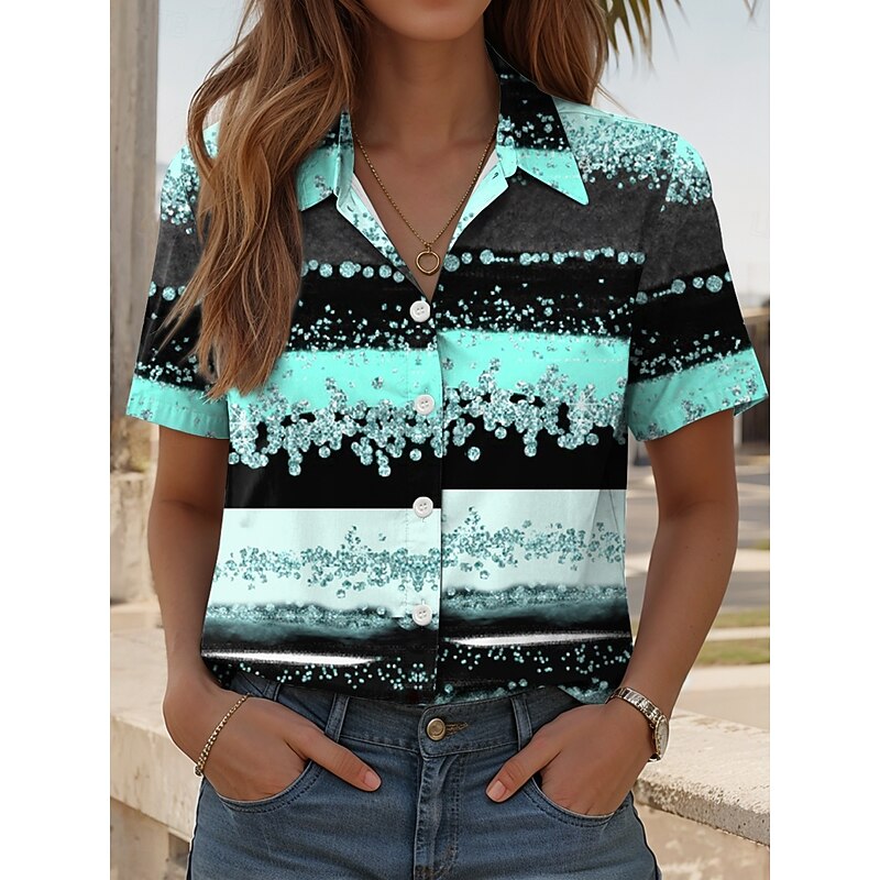 More information about Women's Shirt Long Sleeve Button Down Blouse Graphic Geometric Daily Casual Short Sleeve Shirt Collar Regular Tops Daily Pink Blue Green Summer Spring