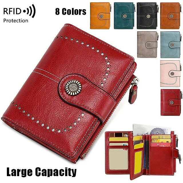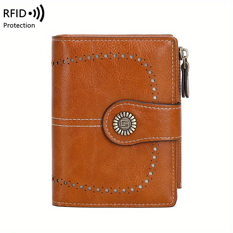 HOT ! Women's RFID Blocking Faux Leather Wallet – Large Capacity Vintage Bifold Clutch Purse with Zipper Coin Pocket for Everyday & Travel Use