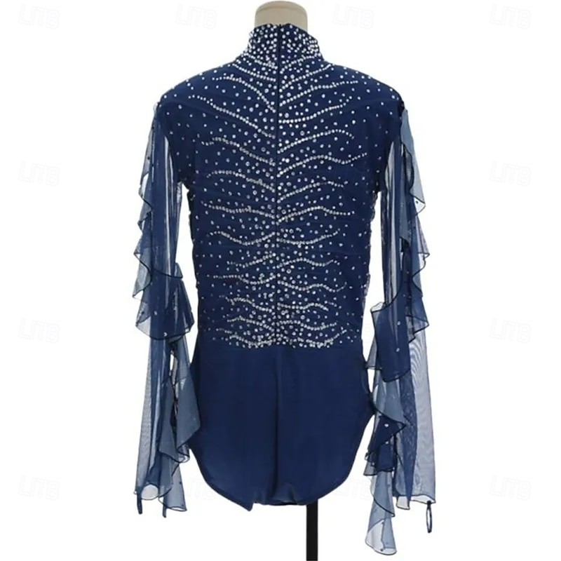 More information about Figure Skating Top Men's Boys' Ice Skating Tops Navy Blue Patchwork Mesh Spandex High Elasticity Training Competition Skating Wear Classic Crystal / Rhinestone Long Sleeve Ice Skating Figure Skating