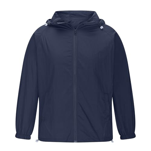 HOT ! Mens UPF 50+ Light Jacket Full Zip Sun Protection Hoodie Summer Long Sleeve Shirt Hiking Fishing Outdoor with Pockets