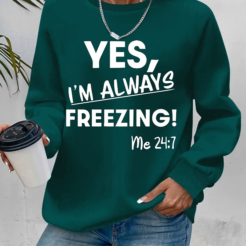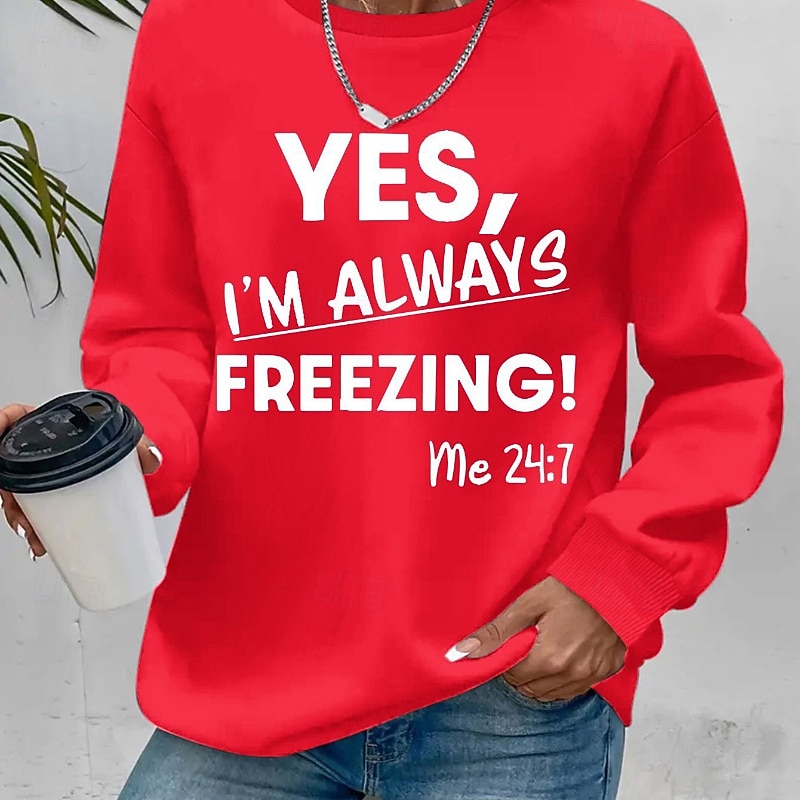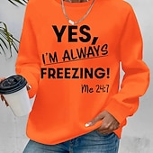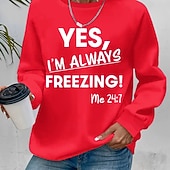 More information about Women's Fleece Lined Pullover Sweatshirt Pajamas Yes Im Cold Letter Streetwear Casual Long Sleeve Crew Neck Regular Tops Holiday Going out Print Black Red Orange Green Dark Gray
