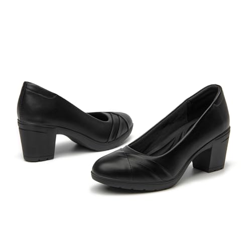 SelenePair Women's Chunky Low Block Heels Work Pumps Ladies Closed Round Toe Slip On Dress Wedding Shoe 1