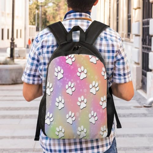 Rainbow Paw Print Pattern Backpack Simple Leisure Travel Backpack Outgoing Daypack 16 inch 3