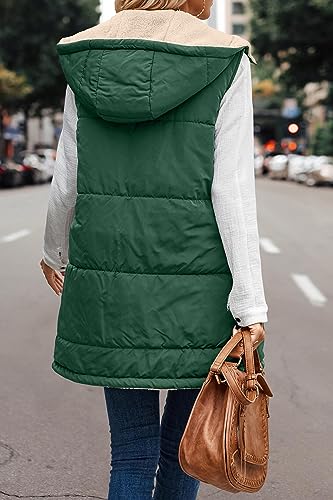 Long Puffer Vest Women Quilted Down Jackets Sleeveless Fleece Jacket Reversible Winter Coat Zip Up Hoodie with Pocket 4