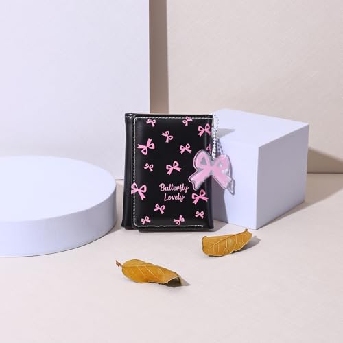 • Unique style: This trifold wallet is coquette aesthetic; black leather texture base with pink bow pattern wallet, matching unique bow pendant, the overall look is textured and beautiful