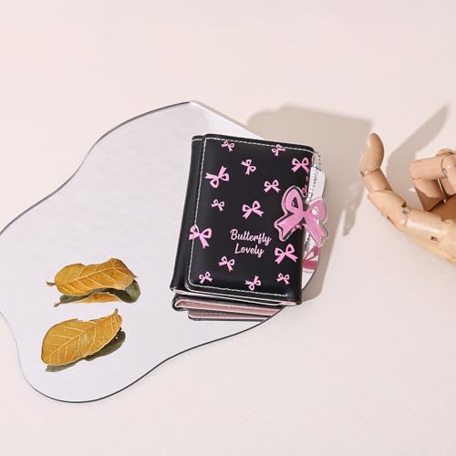 HOT ! Wallet Women, Cute Pink Bow Ladies Trifold Coquette Wallet, Small Wallets Woman Business Credit Card Change Holder Purse for ID Cards Cash Key (Pink Bow)