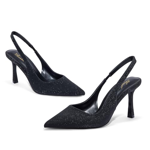 More information about Elisabet Tang Women's Slingback Stiletto Pumps 4 Inch Sexy Pointed Closed Toe High Heels Shoes for Women Fashion Dress Wedding Party Prom Black Glitter 9
