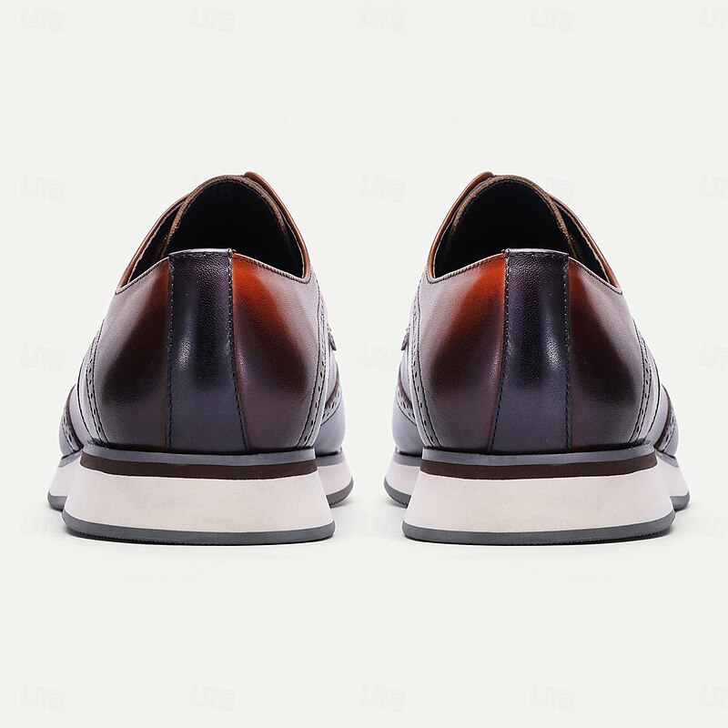 Highlights [Fabric] Expertly crafted from Italian full-grain cowhide leather, these men's wingtip Oxford dress shoes provide both exceptional durability and a luxurious texture. The high-quality leather lining ensures comfort and breathability throughout the day. [Style & Fit] Featuring a classic wingtip design, these shoes are tailored with a pointed toe for a sleek and modern look. The lace-up closure offers a secure fit, making them ideal for prolonged wear during formal occasions or business engagements. [Design Highlights] Intricate brogue detailing along the toe cap and sides adds a touch of traditional elegance, while the sophisticated two-tone pattern of brown and black leather creates a timeless aesthetic. The outsole is designed from lightweight rubber, providing excellent grip and slip resistance for confident strides. [Occasions] These dress shoes are perfect for formal gatherings, business meetings, or simply elevating your everyday wardrobe. Their blend of style and functionality makes them versatile for a variety of events and outfits. [Size Range] Available in sizes US6/EU39/UK5 to US13/EU46/UK12, accommodating a wide range of foot sizes for optimal fit and comfort.