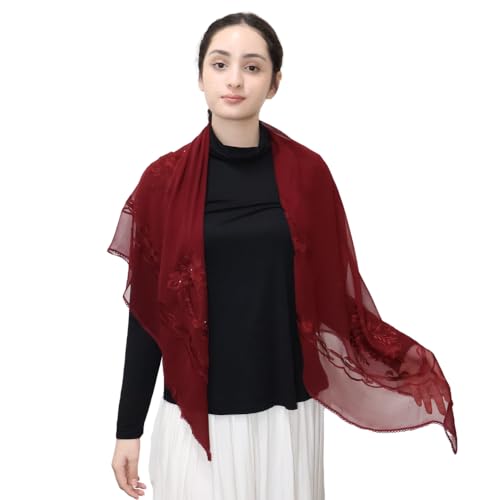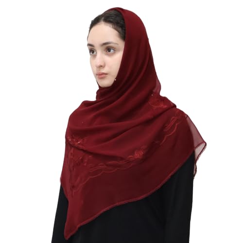 Mu Lan Large Square | 100% Georgette Silk Embroidery Scarf | Hijab Headscarf Should Wrap for Women 5