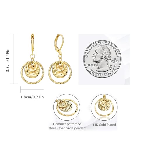 14K Gold Disc Leverback Earrings for Women Gold and Silver Circle Drop Dangle Earrings Jewelry Hypoallergenic Hammered Leverback Dangle Earrings for Gifts 3
