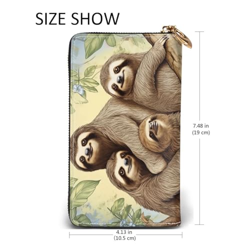 HOT ! Sloth Family Women Wallets Leather Zip Around Clutch Purses Waterproof Credit Card Holder With Phone Holder Ladies Travel Coin Purse