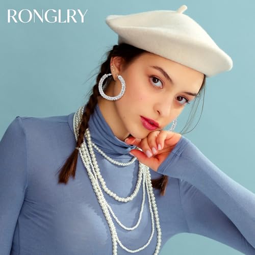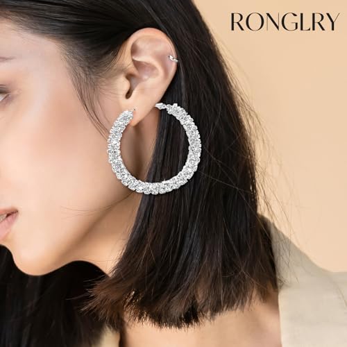 Ronglry Rhinestone Hoop Earrings for Women Glitter Hoop Earrings Bohemian Silver Sparkle Earrings Hoop Dangle Earrings for Women Large Hoop Earrings Crystal Party Earrings Prom Formal Jewelry 5