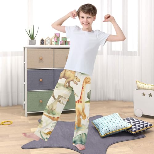 HOT ! ZZXXB Dinosaur Retro Palm Tree Boys Long Pants Soft Trousers Elastic Waist Kids Lounge Bottoms with Pockets S-XL